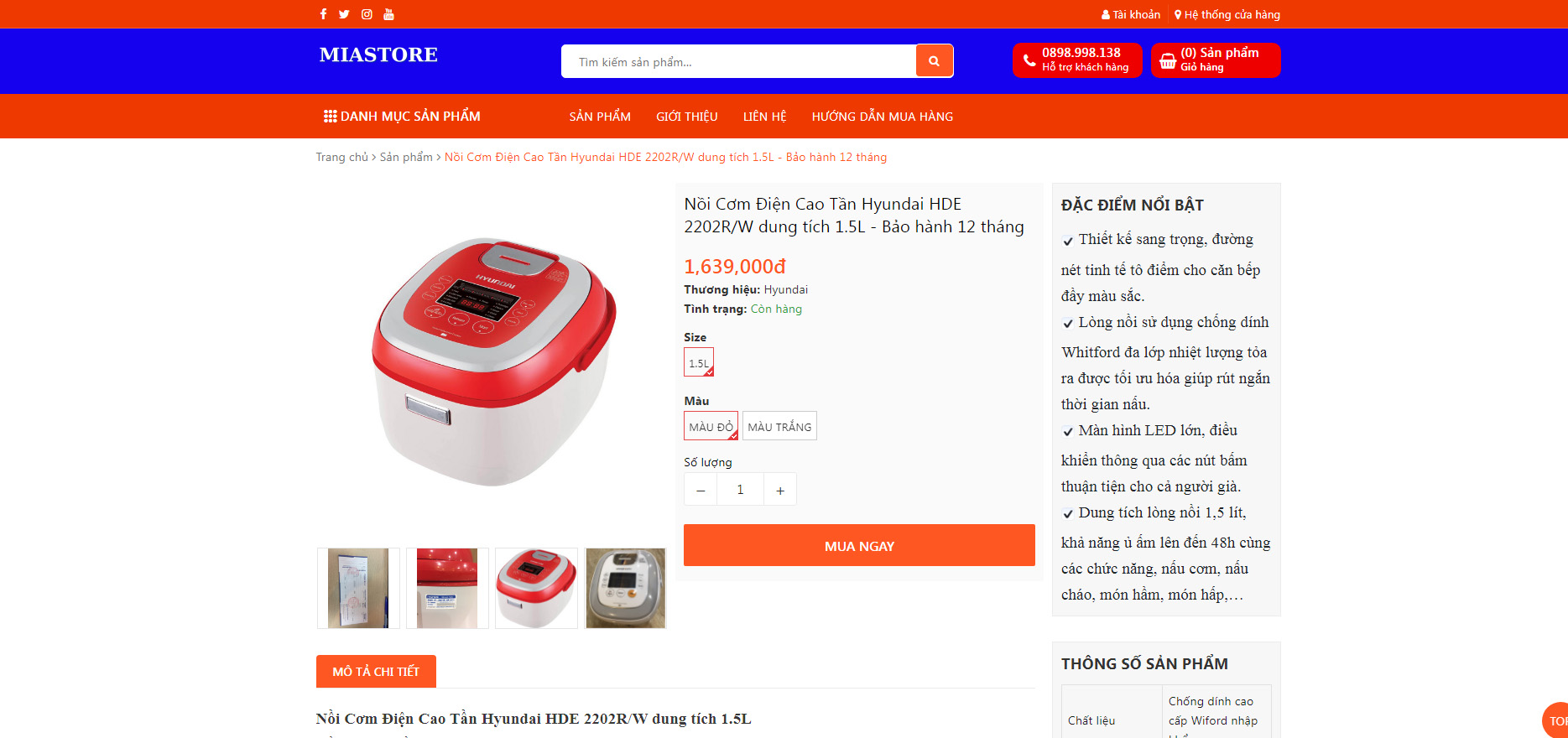 Chọn màu sắc, số lượng và nhấn Mua ngay