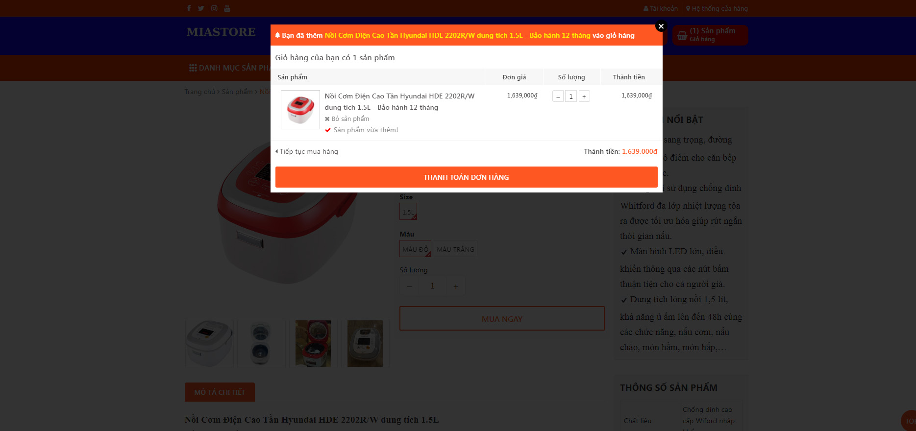 Bước 4 : Nhấn thanh toán đơn hàng