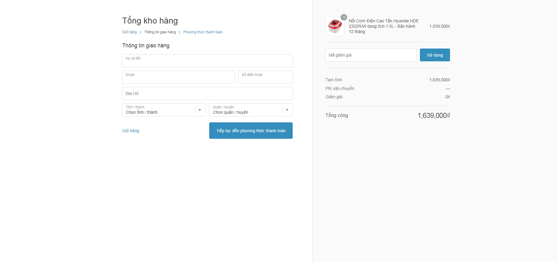 Bước 5 : Điền các thông tin để nhận hàng
